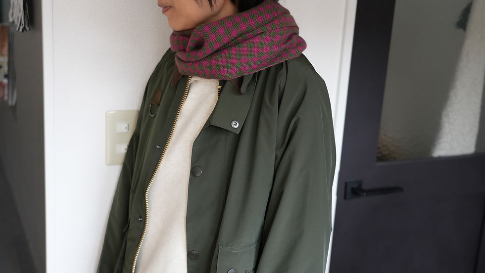❸キッチンクロス・・・少し慣れてきた頃にお家でもテンションが上がる小物を作ります。❹アンゴラウールのマフラー(画像はイメージ)・・・なんと言っても、冬に巻けるマフラーは絶対やってみた課題。打ち込みが難しいですが、サンプルを見て失敗の無いように指導。